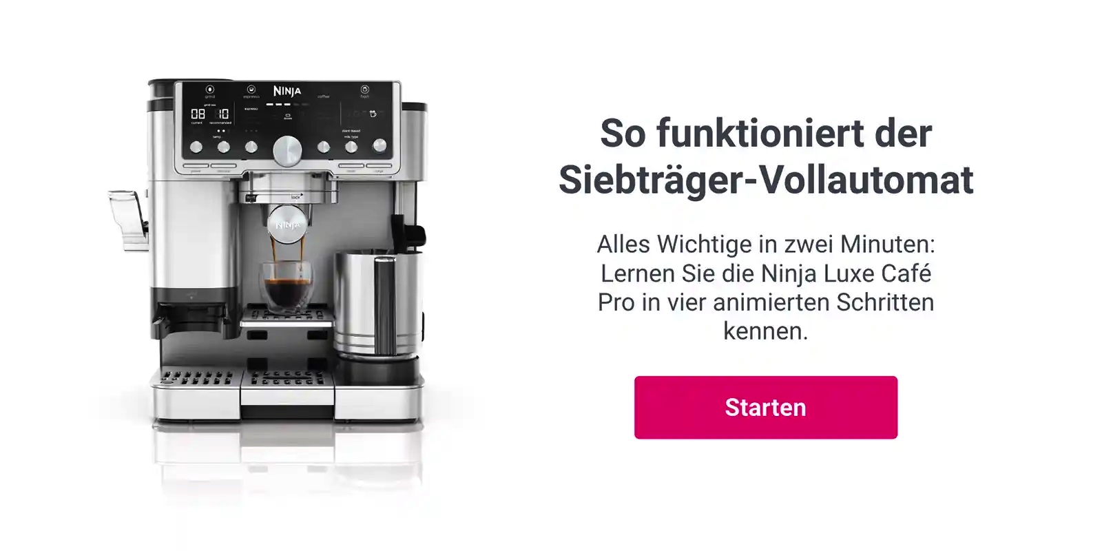Die Ninja Luxe Café Pro ES701EU ist die Maschine für alle, die sich für Kaffee begeistern können, ihn aber nicht zum Lebensinhalt machen wollen. Sie bietet deutlich mehr Möglichkeiten als ein Vollautomat, bleibt dabei aber unkompliziert. Wie ein guter Mentor führt sie durch die Schritte, gibt sinnvolle Empfehlungen und zeigt die kleinen Kniffe, die aus gutem Kaffee richtig guten machen.